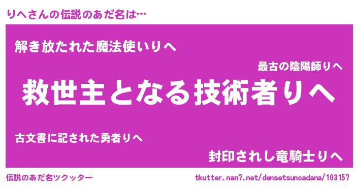 | ヒーロー風カッコイイあだ名 | 『天空の使者りへ』『幻影騎士リヘ』 |