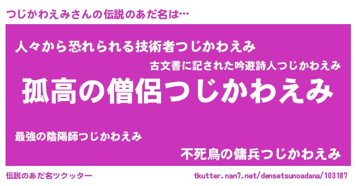 | 意味不明あだ名 | 『自称つじかわえみ』 |