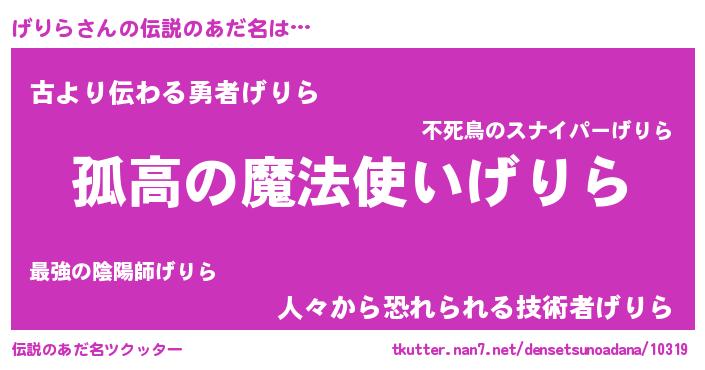 | ヘコむあだ名 | 『げりお』『げりら(苦笑)』『豆乳』 |