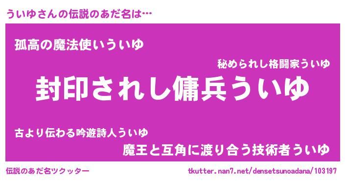 | 意味不明あだ名 | 『住所不定無職ういゆ(68歳)』 |