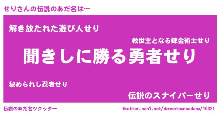 | ヘコむあだ名 | 『せり(震え声)』『せりぷりん』 |