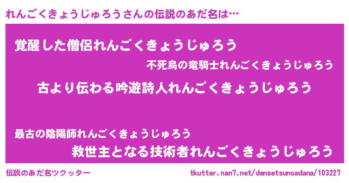 | ヘコむあだ名 | 『れんごくきょうじゅろう(小並感)』 |
