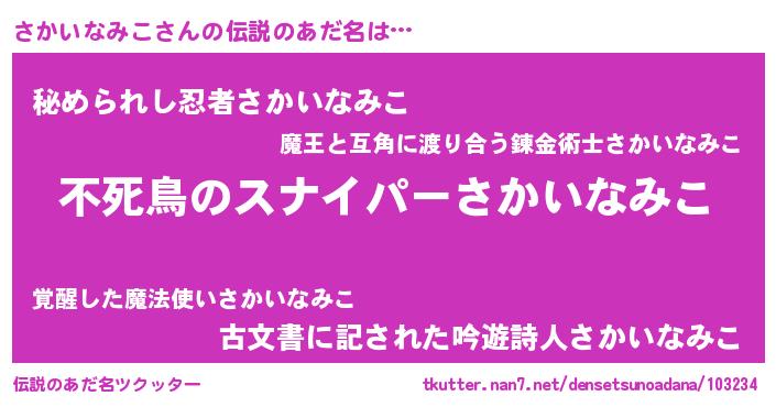 | 女子向けラノベタイトル風あだ名 | 『シンデレラさかいなみこ家の靴箱館』 |