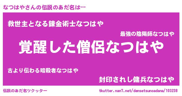 ポケモン風あだ名 | 『ヒナツハヤ』『ナツゴンZ』 |