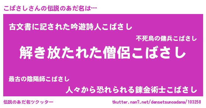 | 意味不明あだ名 | 『とにかく怪しいこばさし』 |