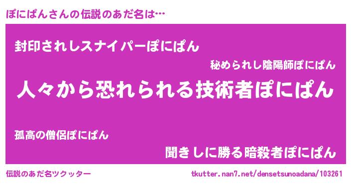 | ヒーロー風カッコイイあだ名 | 『正義の使者ぽにぱん』『仮面ポニダー』 |