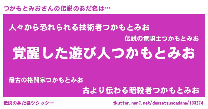 | 意味不明あだ名 | 『とにかく怪しいつかもとみお』 |