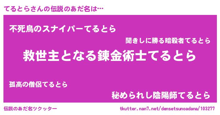 | 男性向けラノベタイトル風あだ名 | 『ノーゲーム・ノーテルトラ』 |