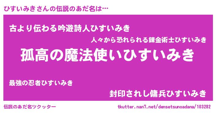 | 女子向けラノベタイトル風あだ名 | 『ひすいみきは平凡を望む』 |