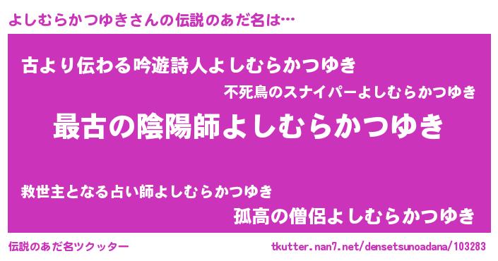 | 肩書あだ名 | 『よしむらかつゆき国家主席』 |