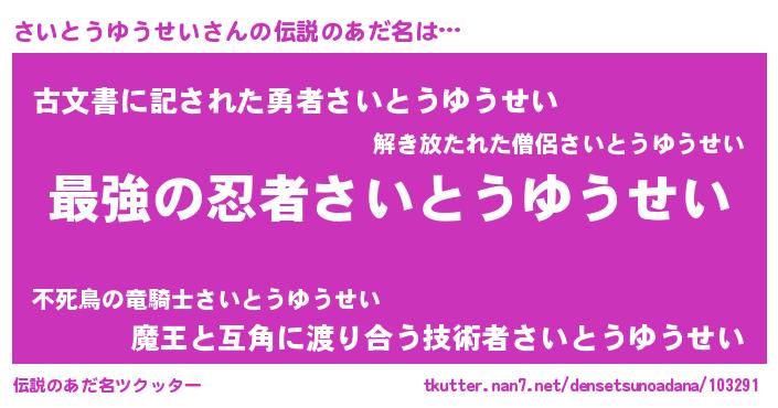 | 意味不明あだ名 | 『さいとうゆうせいフォーエバー』 |