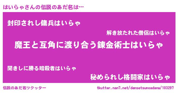 | ヒーロー風カッコイイあだ名 | 『愛の使者はいらゃ』『スーパーハイラャ』 |