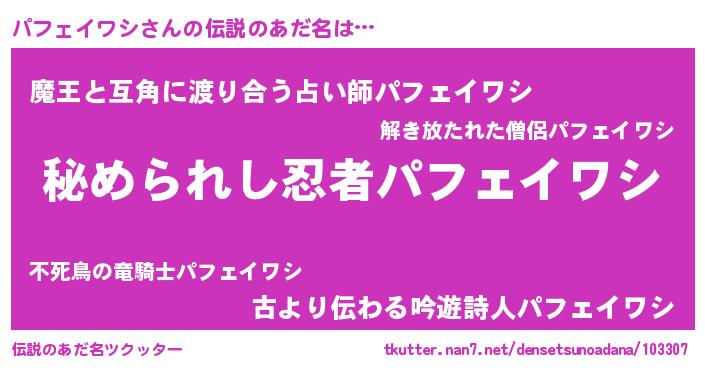 | ファンタジー風あだ名 | 『エターナルパフェイワシー』 |