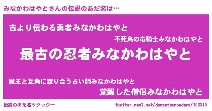 | 意味不明あだ名 | 『みなかわはやとフォーエバー』 |