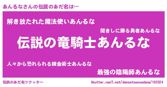 | ヒーロー風カッコイイあだ名 | 『スーパーアンルナ』『最強戦士アンルナ』 |