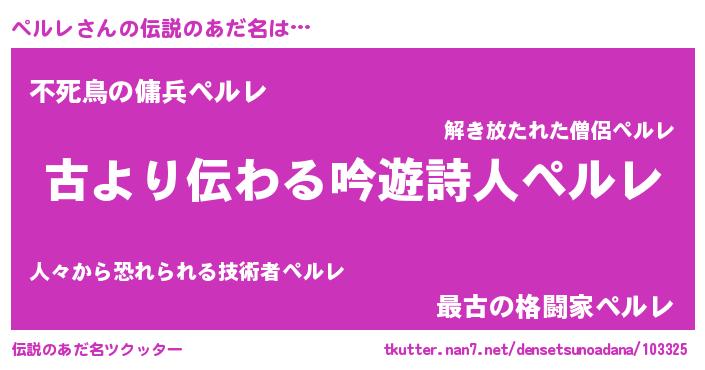 | ポケモン風あだ名 | 『ペルゴンZ』『ゼニペル』『ペールイ』 |