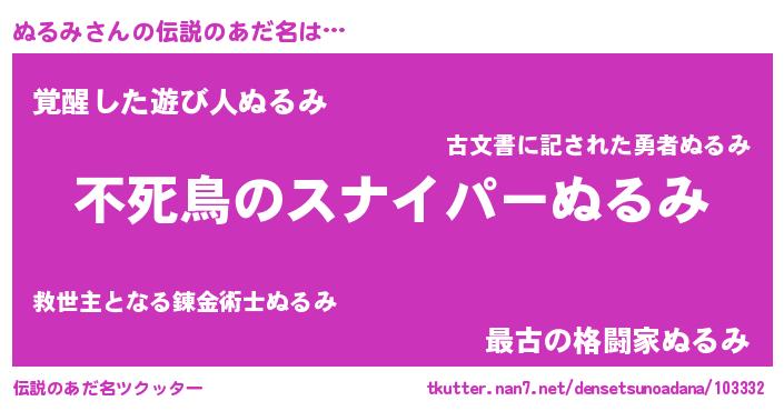 | ファンタジー風あだ名 | 『ゼヌルトゥ』『ヌルフェル』 |