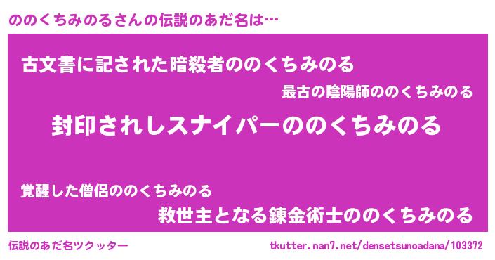 | 男性向けラノベタイトル風あだ名 | 『この素晴らしい世界にののくちみのるを!』 |