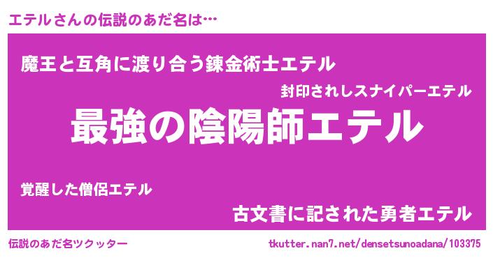 | 意味不明あだ名 | 『エテルフォーエバー』『永久保存エテル』 |