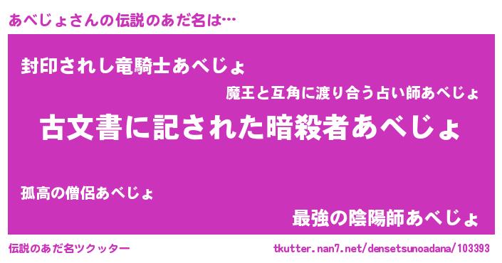 | 意味不明あだ名 | 『永久保存あべじょ』『自称あべじょ』 |