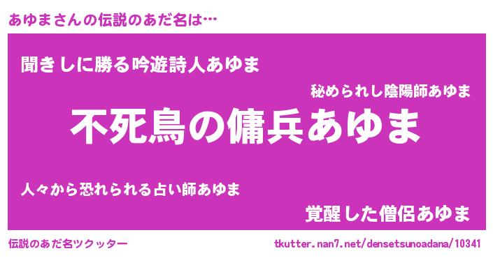 | 女子向けラノベタイトル風あだ名 | 『あゆま姫と円卓の騎士』 |