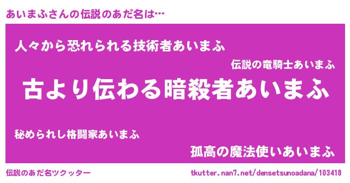 | 意味不明あだ名 | 『永久保存あいまふ』『自称あいまふ』 |
