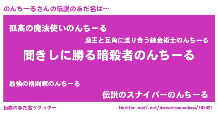 | 男性向けラノベタイトル風あだ名 | 『のんちーるという概念が存在しない退屈な世界 』 |