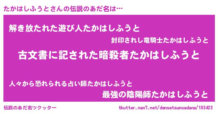 | 意味不明あだ名 | 『永久保存たかはしふうと』 |