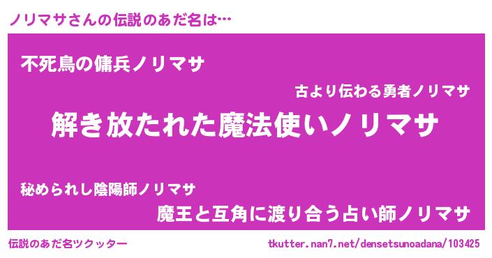 | ヒーロー風カッコイイあだ名 | 『ウルトラ戦士ノリマサ』『魔戒騎士ノリ』 |