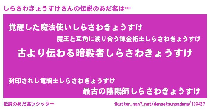 | 胡散臭い通販商品みたいなあだ名 | 『来世でも幸せになれる健康食品…その名も「しらさわきょうすけ」』 |