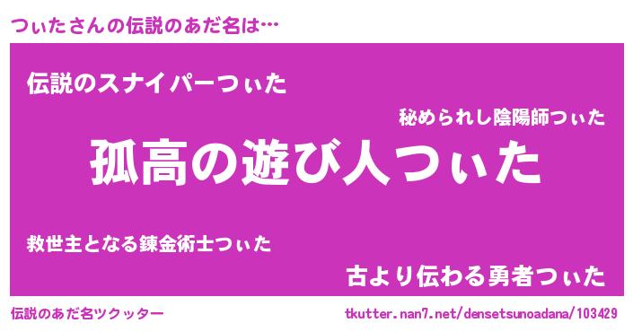 | 意味不明あだ名 | 『自称つぃた』『とにかく怪しいつぃた』 |