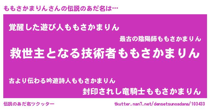 | ヒーロー風カッコイイあだ名 | 『慈愛の使者ももさかまりん』 |