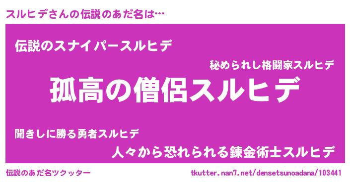 | ヒーロー風カッコイイあだ名 | 『超時空戦士スルヒデ』『魔戒騎士スル』 |