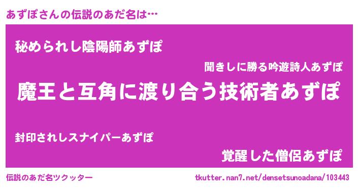 | 女子向けラノベタイトル風あだ名 | 『あずぽ恋絵巻』『あずぽの雑貨屋さん』 |