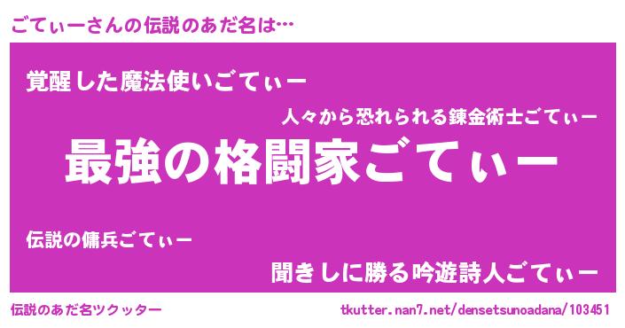 | ヒーロー風カッコイイあだ名 | 『ウルトラごてぃーマン』『暗黒騎士ゴテ』 |
