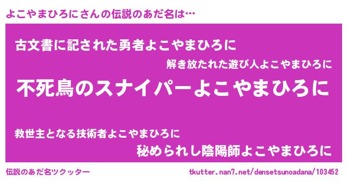 | ヒーロー風カッコイイあだ名 | 『スーパーヨコヤマヒロニ』 |