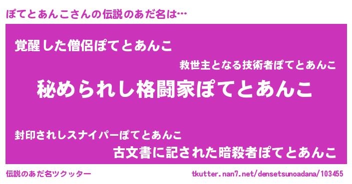 | 意味不明あだ名 | 『住所不定無職ぽてとあんこ(9歳)』 |