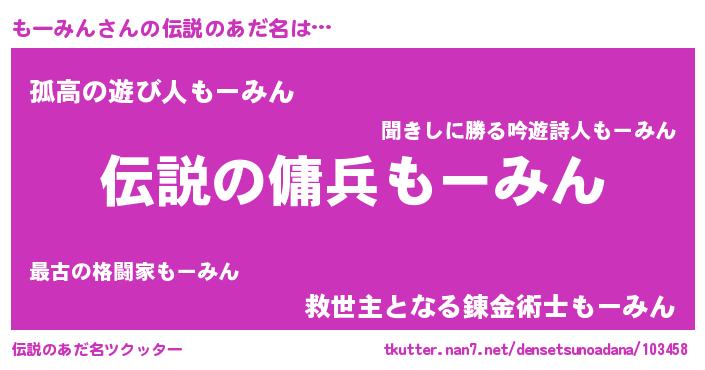 | ヒーロー風カッコイイあだ名 | 『仮面モーダー』『サイバー戦士モーミン』 |