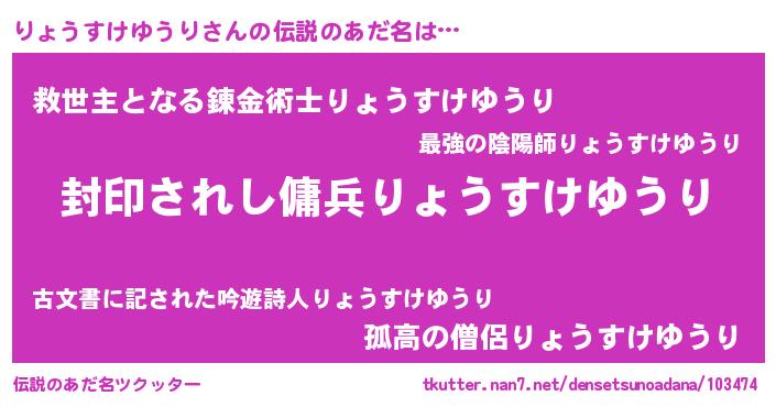 | 男性向けラノベタイトル風あだ名 | 『この素晴らしい世界にりょうすけゆうりを!』 |