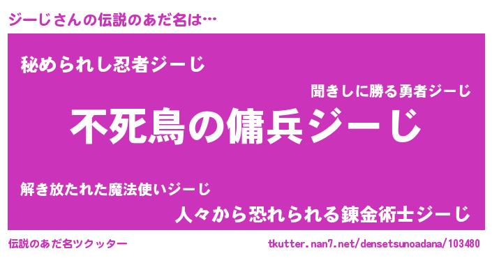 | 意味不明あだ名 | 『住所不定無職ジーじ(56歳)』 |