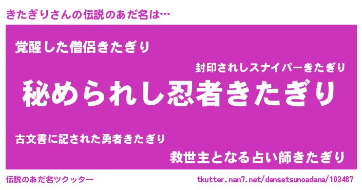 | 意味不明あだ名 | 『きたぎりフォーエバー』『自称きたぎり』 |