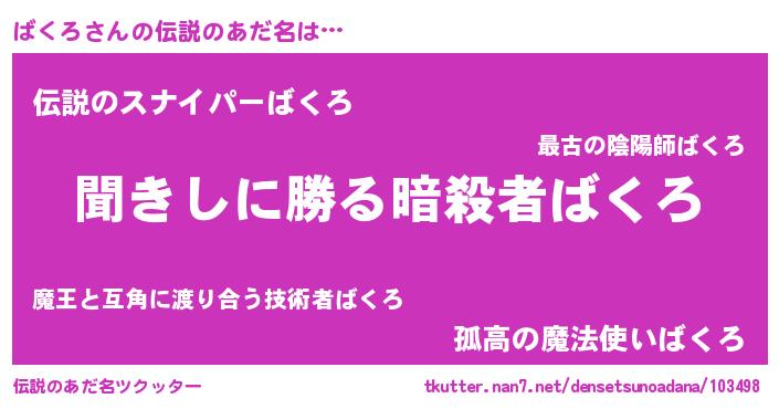 | ヒーロー風カッコイイあだ名 | 『超時空戦士バクロ』『ネオバクロ』 |