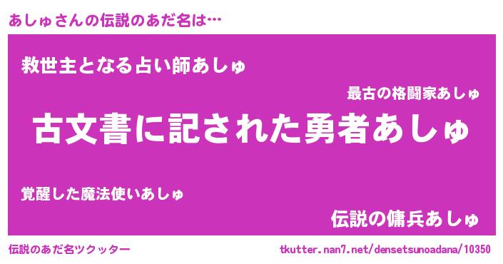 | 意味不明あだ名 | 『自称あしゅ』『永久保存あしゅ』 |