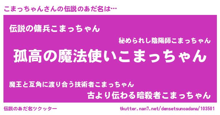 | 胡散臭い通販商品みたいなあだ名 | 『信頼と実績のサプリメント…その名も「こまっちゃん」』 |