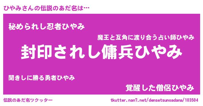 | 胡散臭い通販商品みたいなあだ名 | 『億万長者になれる水晶球…その名も「ひやみ」』 |