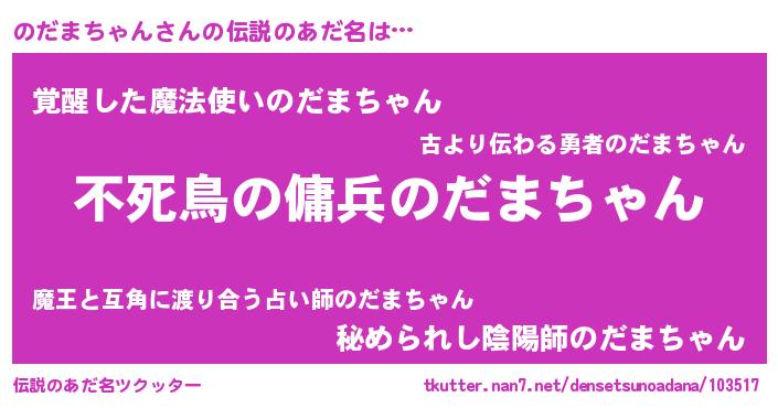 | 男性向けラノベタイトル風あだ名 | 『はたらくのだまちゃんさま!』 |