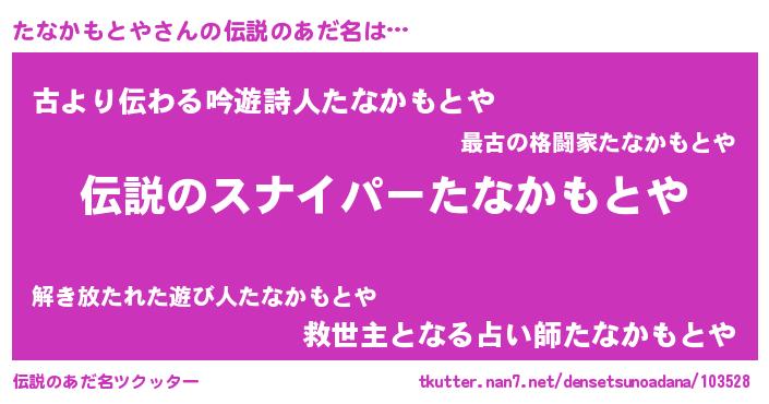 | 意味不明あだ名 | 『住所不定無職たなかもとや(89歳)』 |