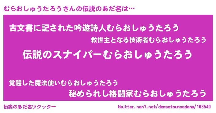 | ヒーロー風カッコイイあだ名 | 『スーパームラオシュウタロウ』 |