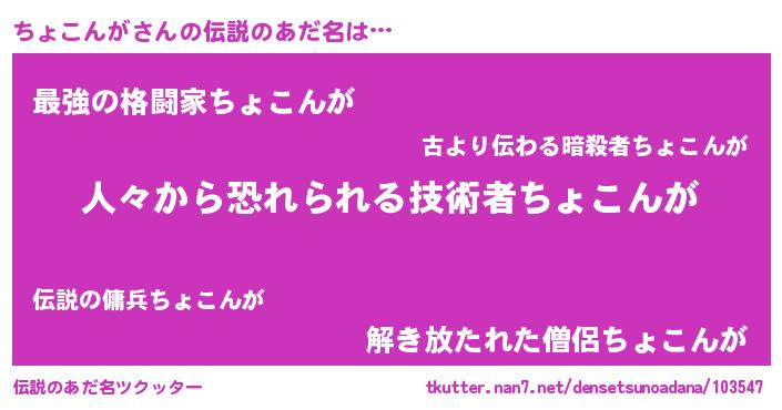 | 意味不明あだ名 | 『住所不定無職ちょこんが(9歳)』 |