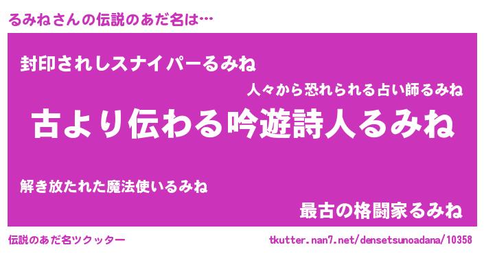 | 意味不明あだ名 | 『住所不定無職るみね(5歳)』『自称るみね』 |